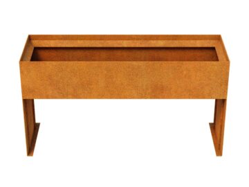 PLANTA 12 to donica ogrodowa wykonana ze stali cortenowej o grubości 2mm ze skośnym rantem oraz długimi wspornikami. W standardzie donica wyposażona jest w otwory odpływowe umieszczone w dnie.